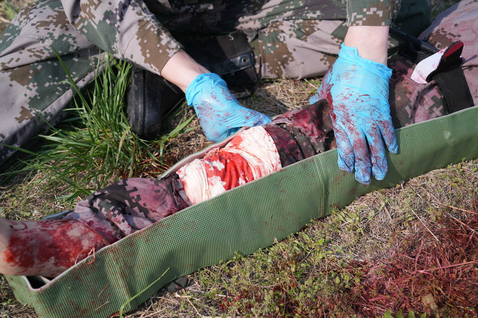 - Μπορεί να προσομοιωθεί η αιμορραγία στην περιοχή των συνδέσμων που προκαλείται από έκρηξη και πυροβολισμό, όπως η αιμορραγία από τραύμα κοιλιακής έκρηξης. Η αιμόσταση μπορεί να επιτευχθεί με επίδεση.