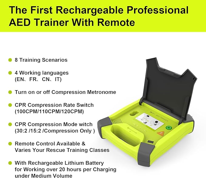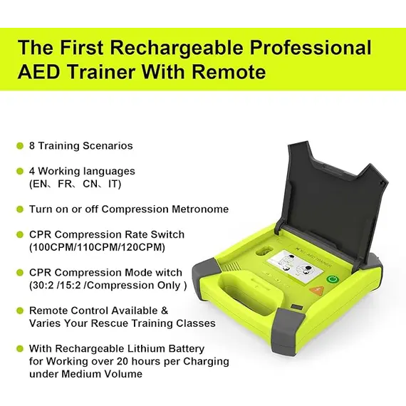 • Περιλαμβάνει λειτουργία CPR με μετρονόμο, σενάρια και επιλογές έντασης & γλώσσας.