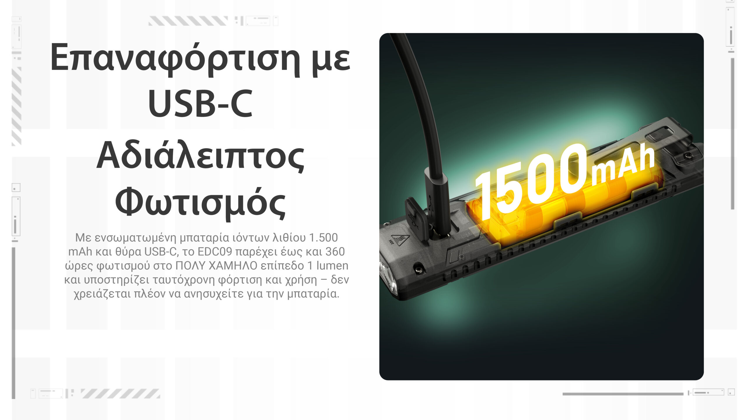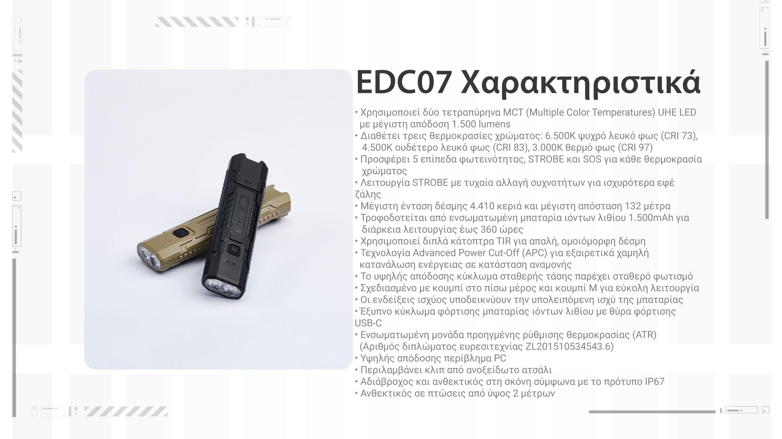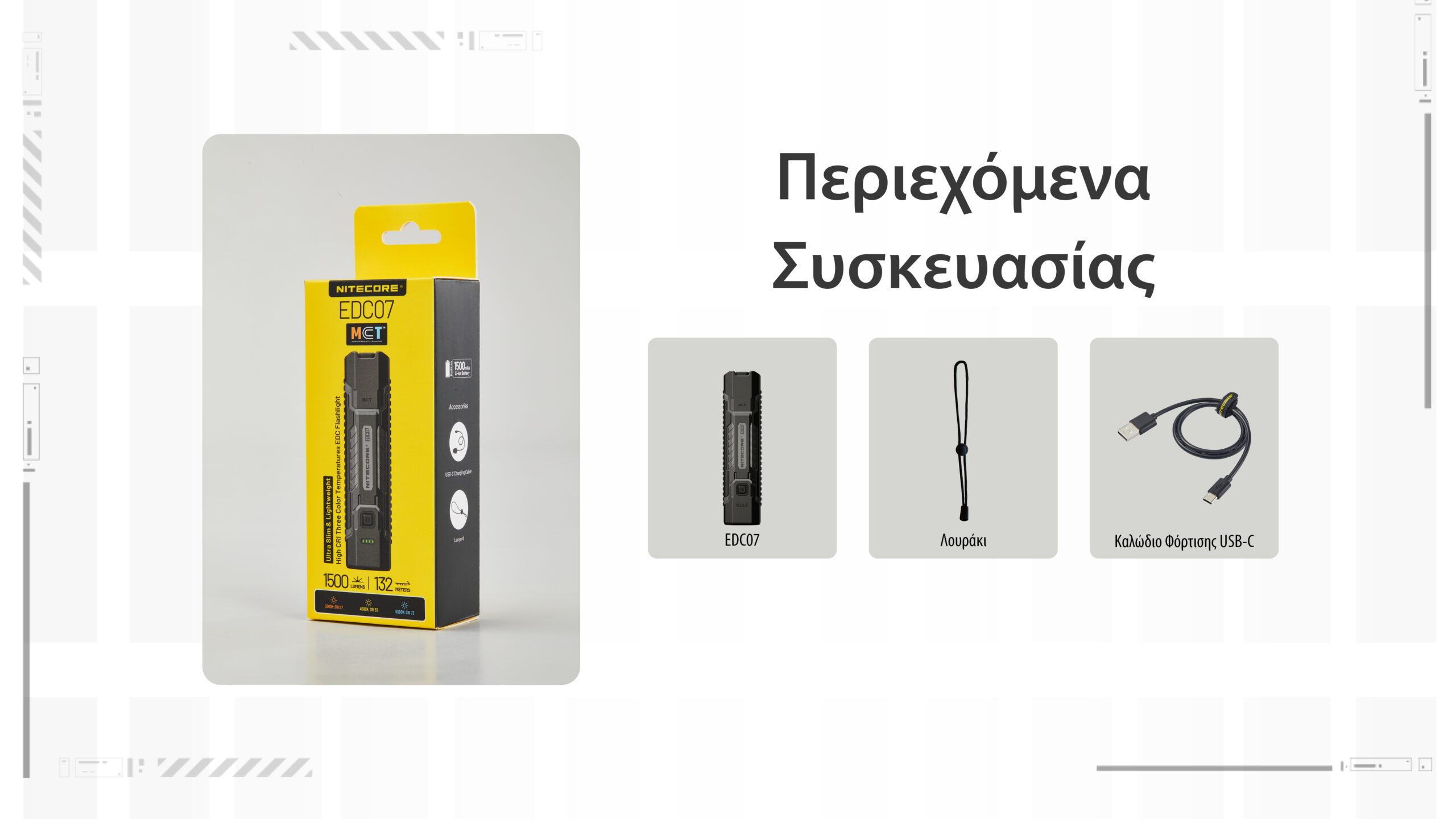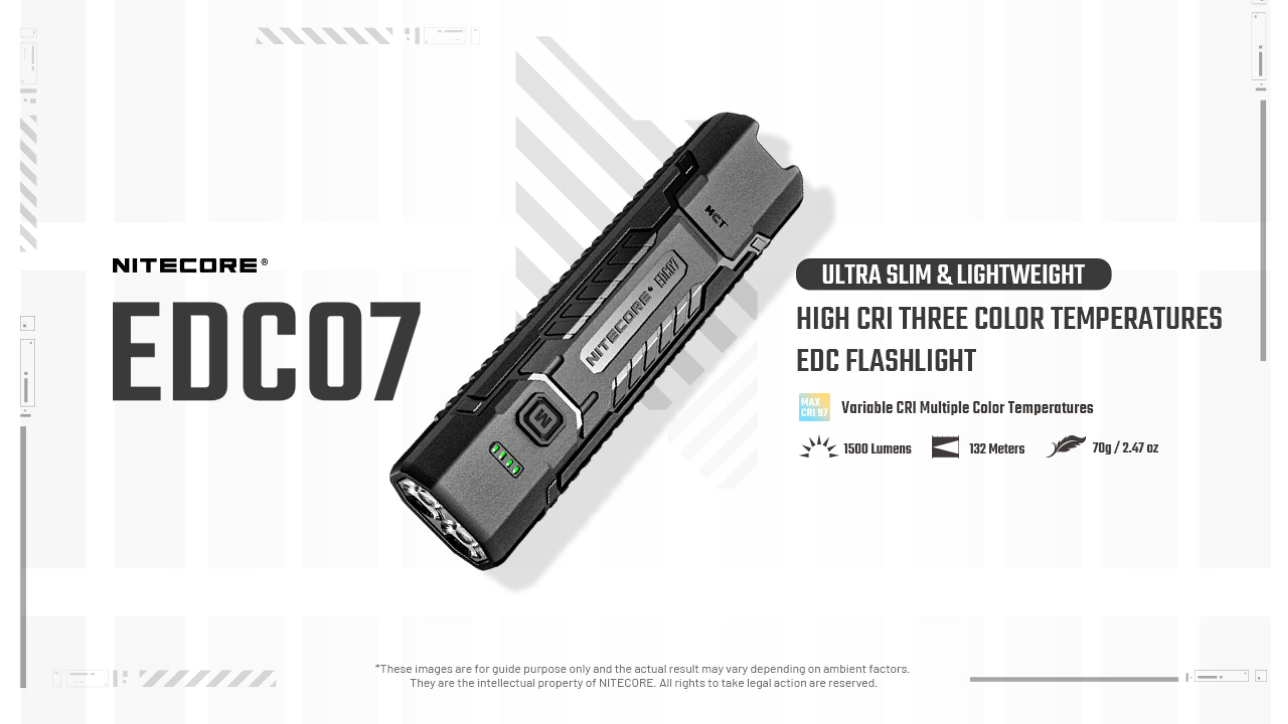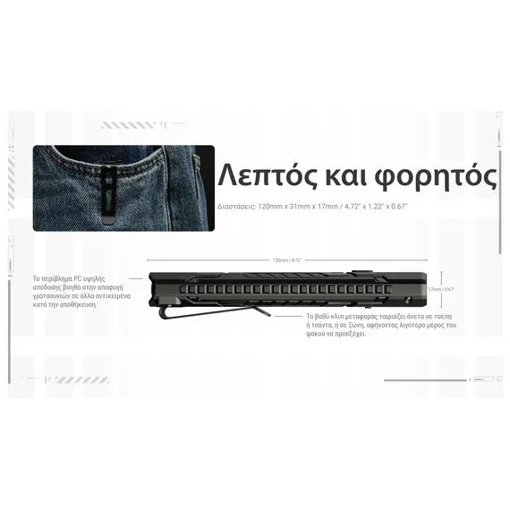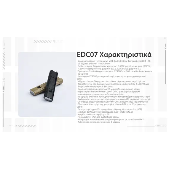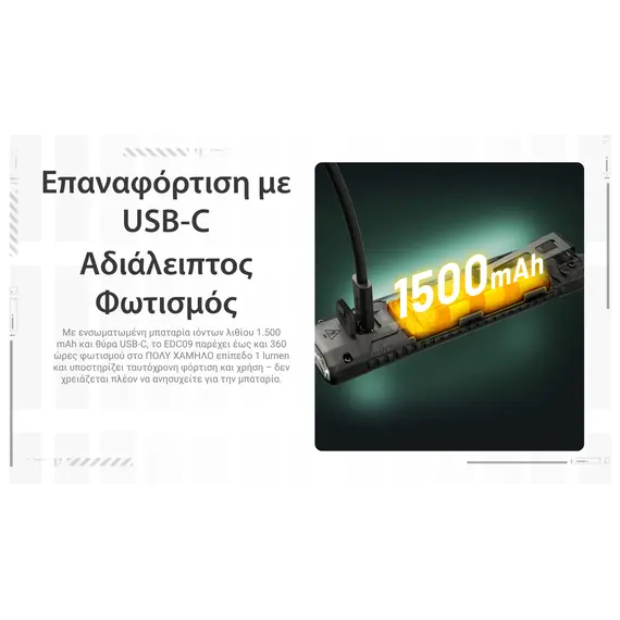 ΦΑΚΟΣ LED NITECORE EDC07, Ultra Slim and Lightweght , 1500lm, Black