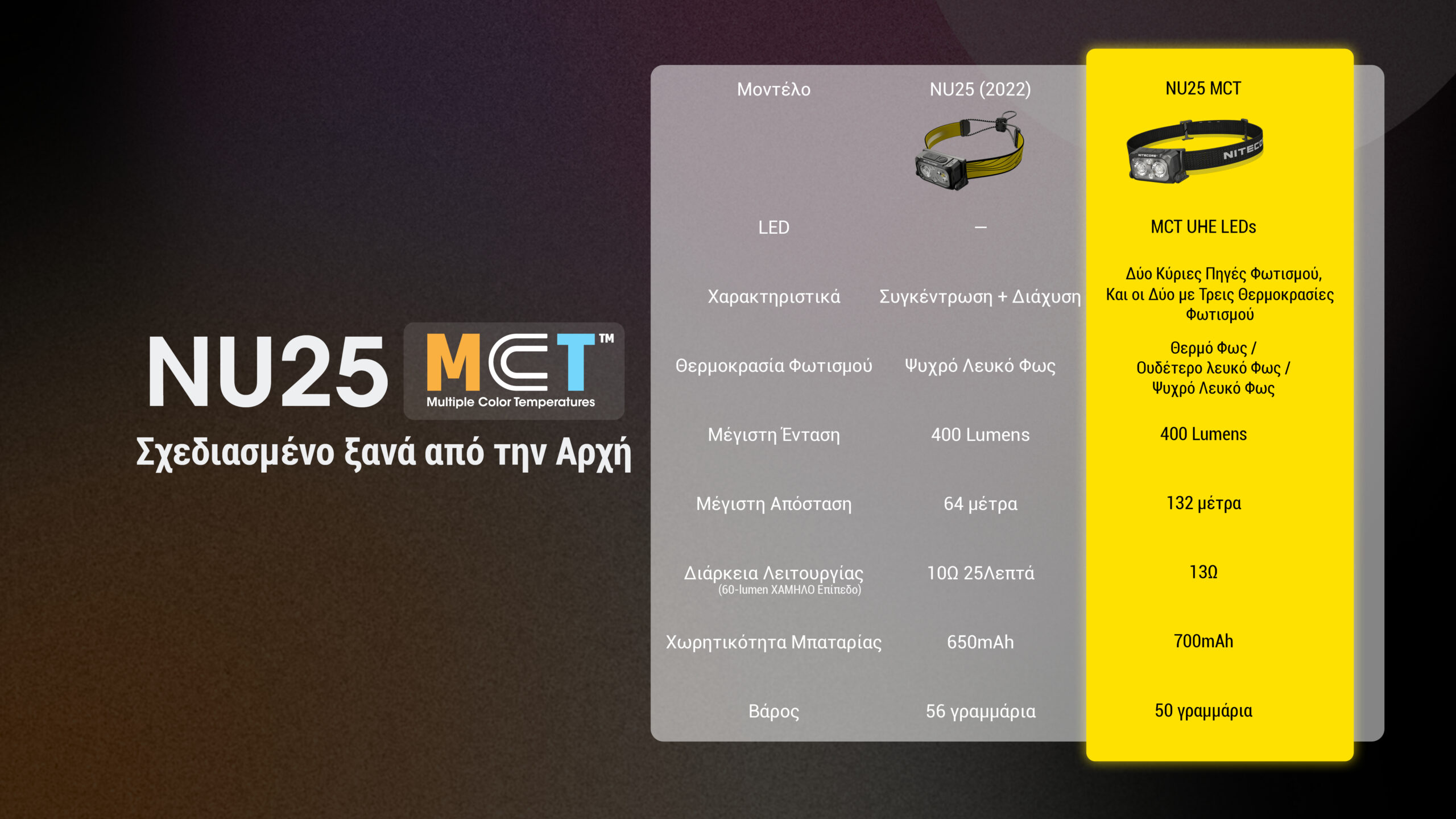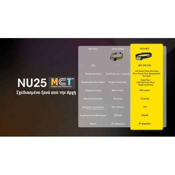 ΦΑΚΟΣ LED NITECORE HEADLAMP NU25 MCT