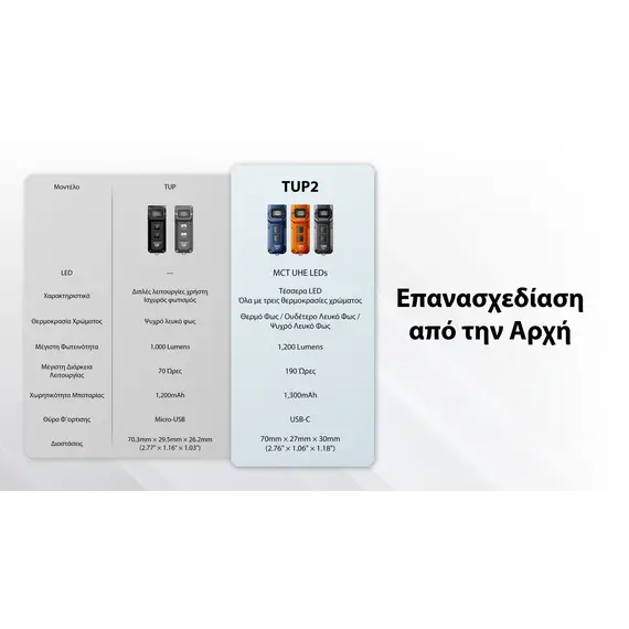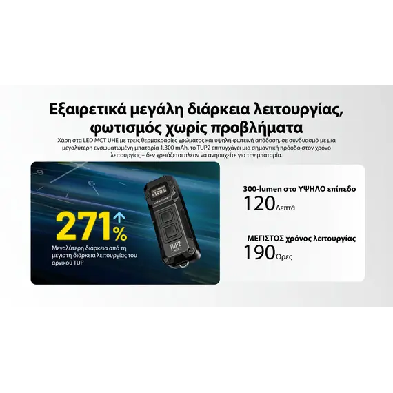 ΦΑΚΟΣ LED NITECORE TUP2, MCT, 1200lm, Black