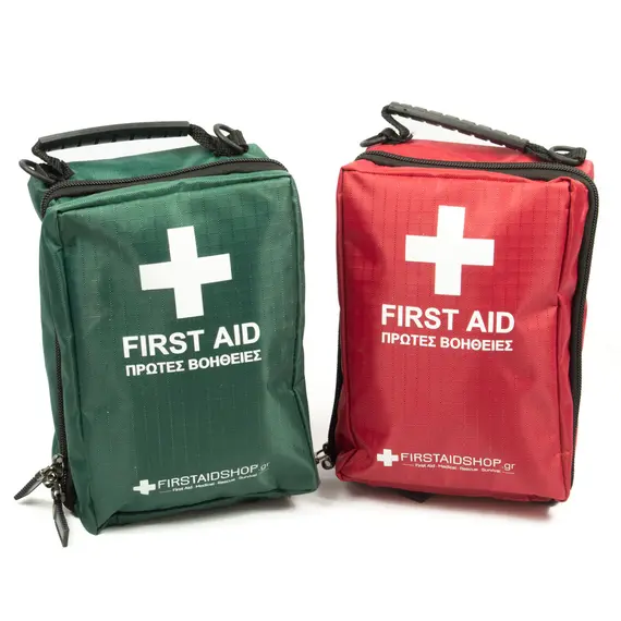 Το περιεχόμενο του κιτ περιλαμβάνεται σε τσάντα κόκκινου ή πράσινου χρώματος FAS-400, με την ελληνική επιγραφή «FIRST AID και ΠΡΩΤΕΣ ΒΟΗΘΕΙΕΣ» για άμεσο οπτικό εντοπισμό. Η επιλογή της τσάντας έγινε με βάση τις βολικές διαστάσεις που επιτρέπουν την εύκολη αποθήκευσή της σε κάθε τύπο οχήματος.