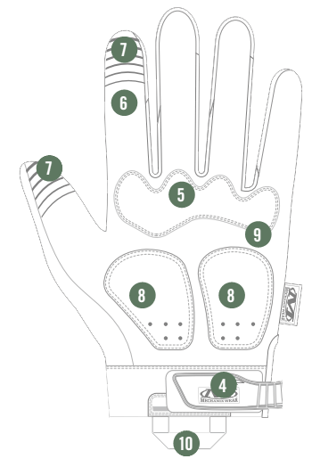 – Ανθεκτικό συνθετικό δέρμα στην παλάμη.