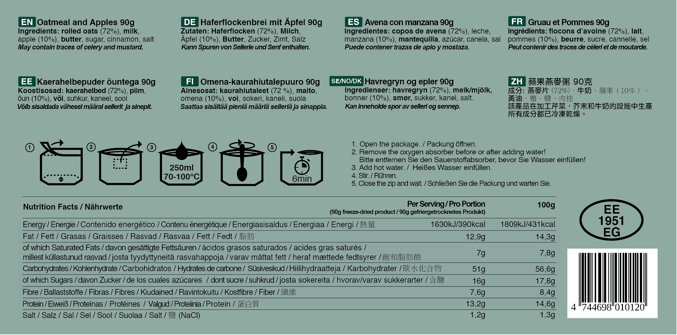 Η συσκευασία τους είναι ιδιαίτερα ανθεκτική, πρακτική, προστατευμένη και σχεδιασμένη για την ετοιμασία των γευμάτων εντός αυτής. Με το ελάχιστο βάρος και διαστάσεις μπορεί να μεταφερθεί σε κάθε σακίδιο αλλά ακόμη και σε θέσεις ρουχισμού χωρίς να επιβαρύνει τον χρήστη στις υπαίθριες δραστηριότητές του.