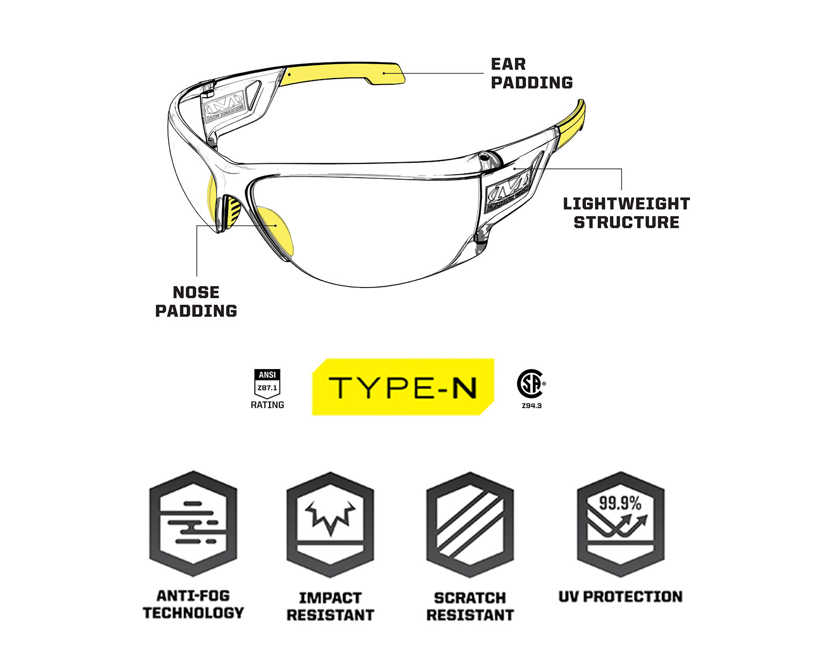 Σχεδιασμένα για χρήση σε εσωτερικούς και εξωτερικούς χώρους σε διάφορους κλάδους και με ενσωματωμένη τεχνολογία κατά της ομίχλης, τα γυαλιά Type-N συνδυάζουν προστασία και στυλ.