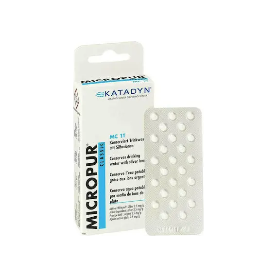 Οι ταμπλέτες καθαρισμού νερού Micropur Classic MC 1T από την εταιρεία Katadyn προσφέρουν έναν ασφαλή, απλό και οικολογικό τρόπο για τη διατήρηση καθαρού πόσιμου νερού, ιδανικό για ταξίδια, διακοπές, σκάφη, τροχόσπιτα και κατασκηνώσεις.