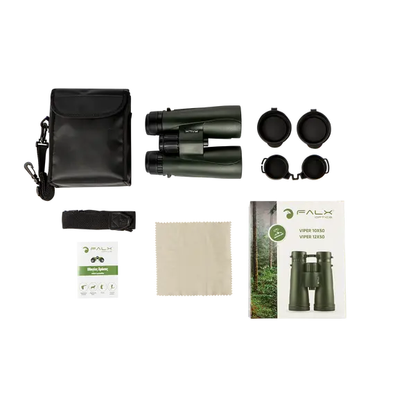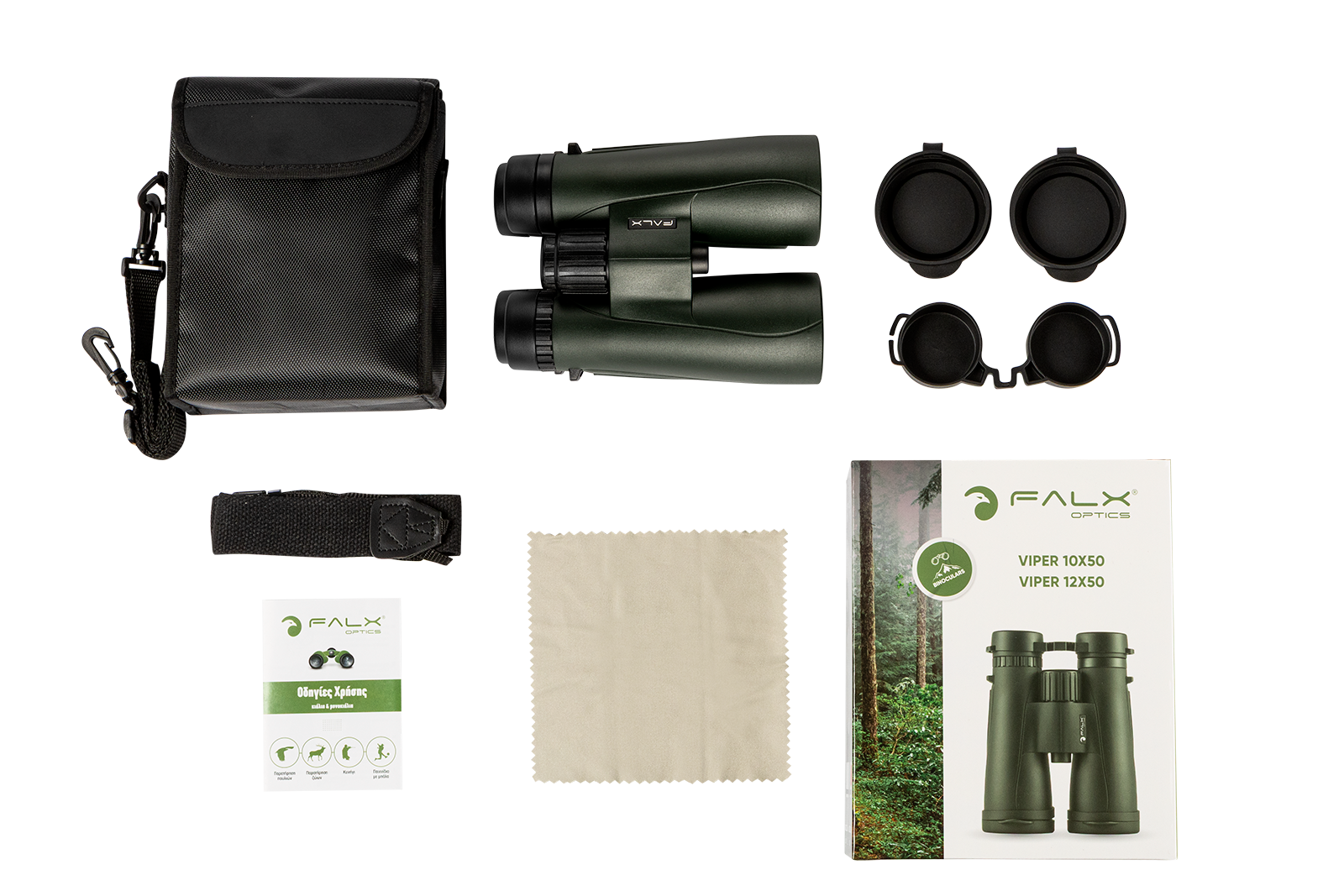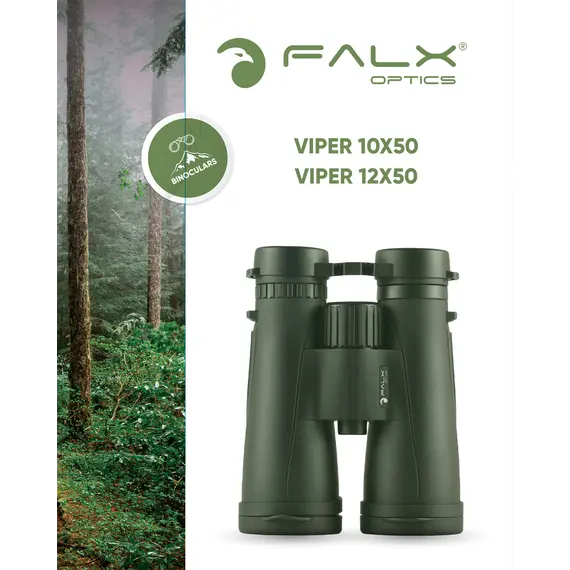 Ανακαλύψτε την τέλεια ισορροπία μεταξύ απόδοσης και ανθεκτικότητας με τα κιάλια FALX Viper HD — διαθέσιμα σε μεγεθύνσεις 10×50 και 12×50.