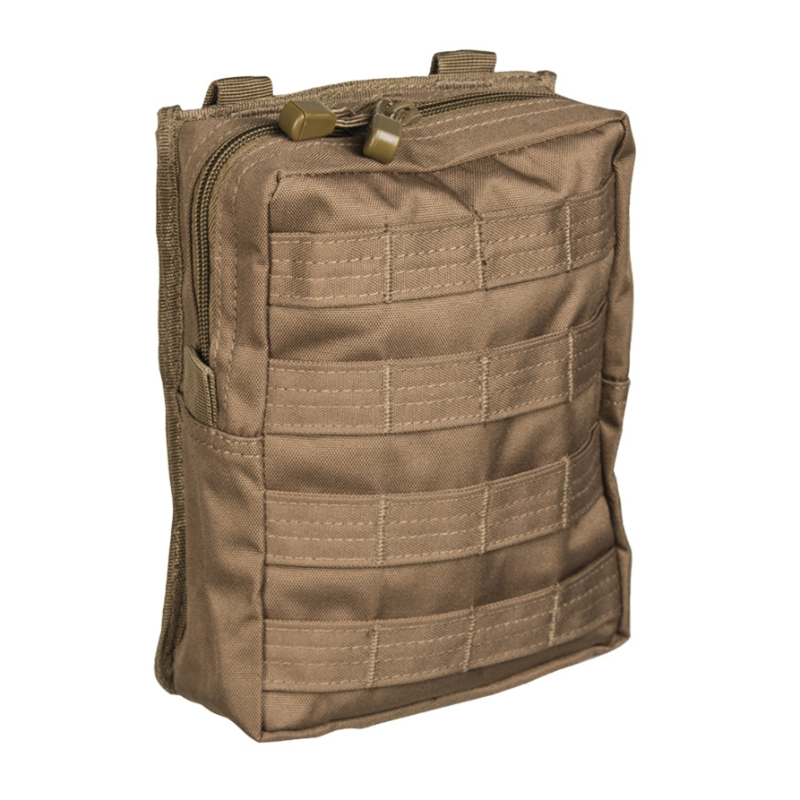 Επιλέχθηκε το τσαντάκι της MIL-TEC με δυνατότητα επιλογής διαφόρων χρωμάτων. Είναι ιδανικό σε μέγεθος, διαθέτει στο εσωτερικό ιμάντες για στερέωση των υλικών και Velcro στο εξωτερικό για την επικόλληση σήματος ένδειξης Α' Βοηθειών ή άλλο. Το τσαντάκι αυτό χωρά άνετα σε σάκο αποστολών, περνάει στην ζώνη ενώ είναι συμβατό με το σύστημα molle του tactical εξοπλισμού.