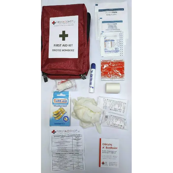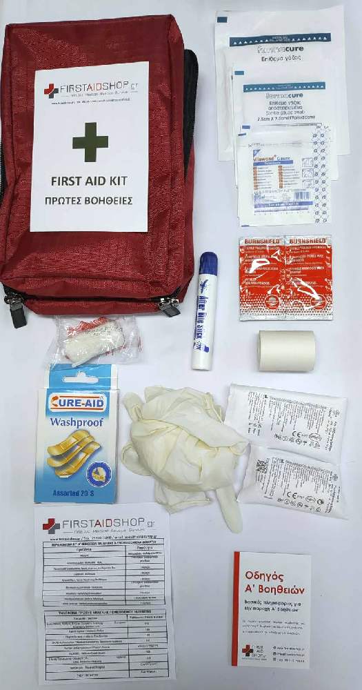- 1x Αυτοκόλλητο με τις ενδείξεις "FIRST AID ΚΙΤ" και "ΠΡΩΤΕΣ ΒΟΗΘΕΙΕΣ"