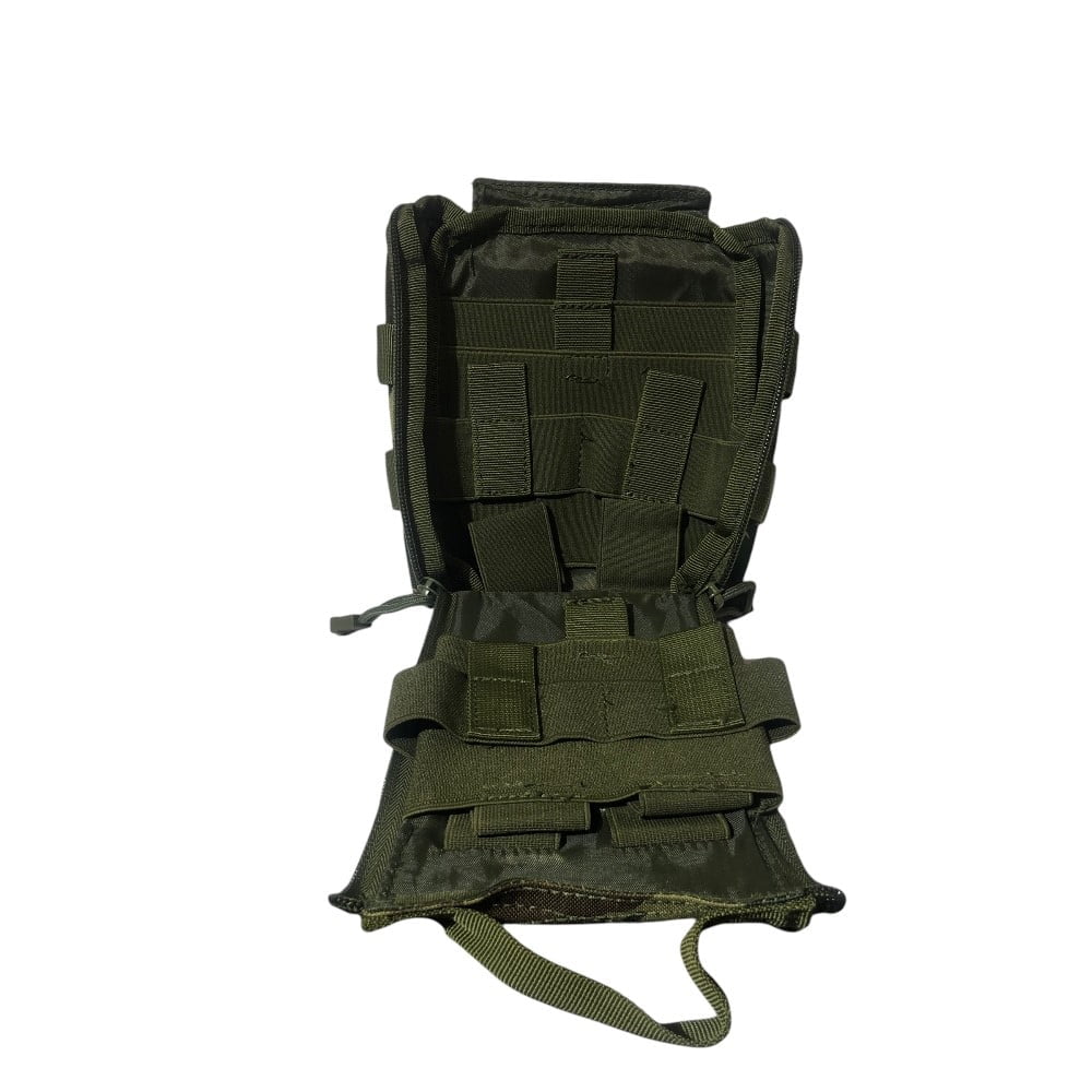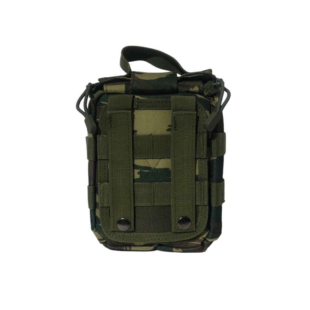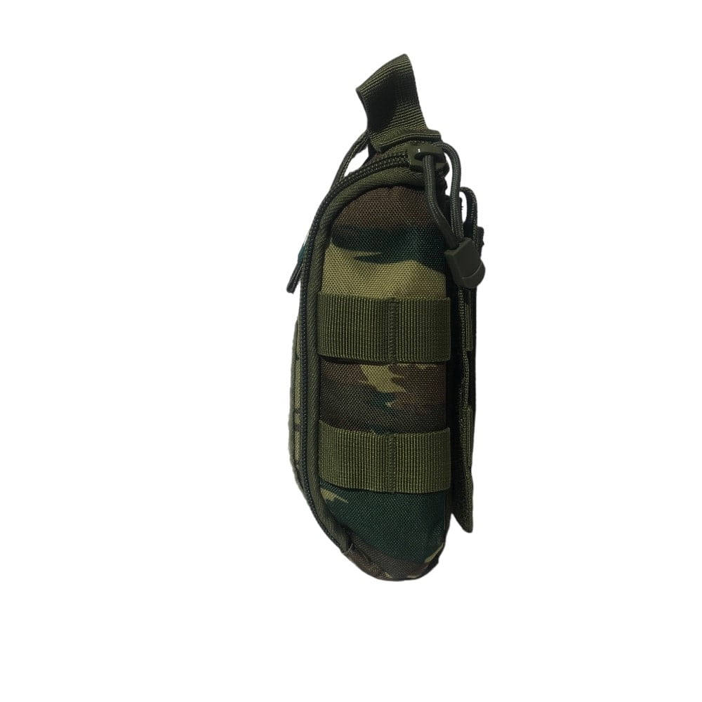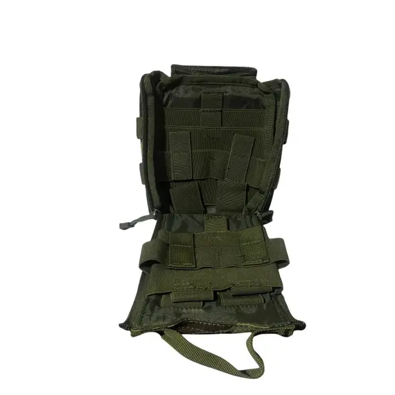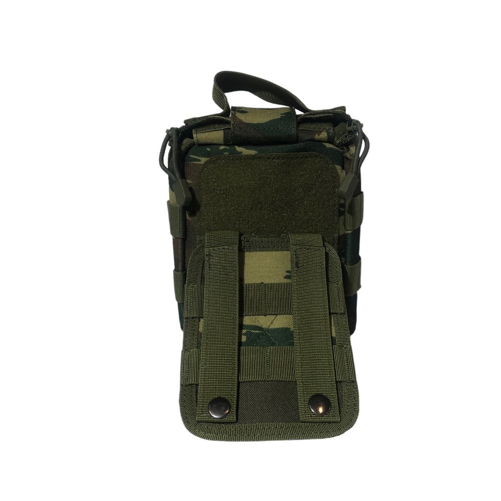 - Στο πίσω μέρος το τσαντάκι περιέχει σύστημα molle για προσαρμογή σε ζώνη, τσάντα πλάτης ή άλλο εξοπλισμό. Το σύστημα molle αυτό είναι προσαρμοσμένο πάνω στο τσαντάκι με Velcro έτσι ώστε να μπορεί ο χρήστης να το αποσπάσει ανα πάσα στιγμή (βλέπε φώτο)
