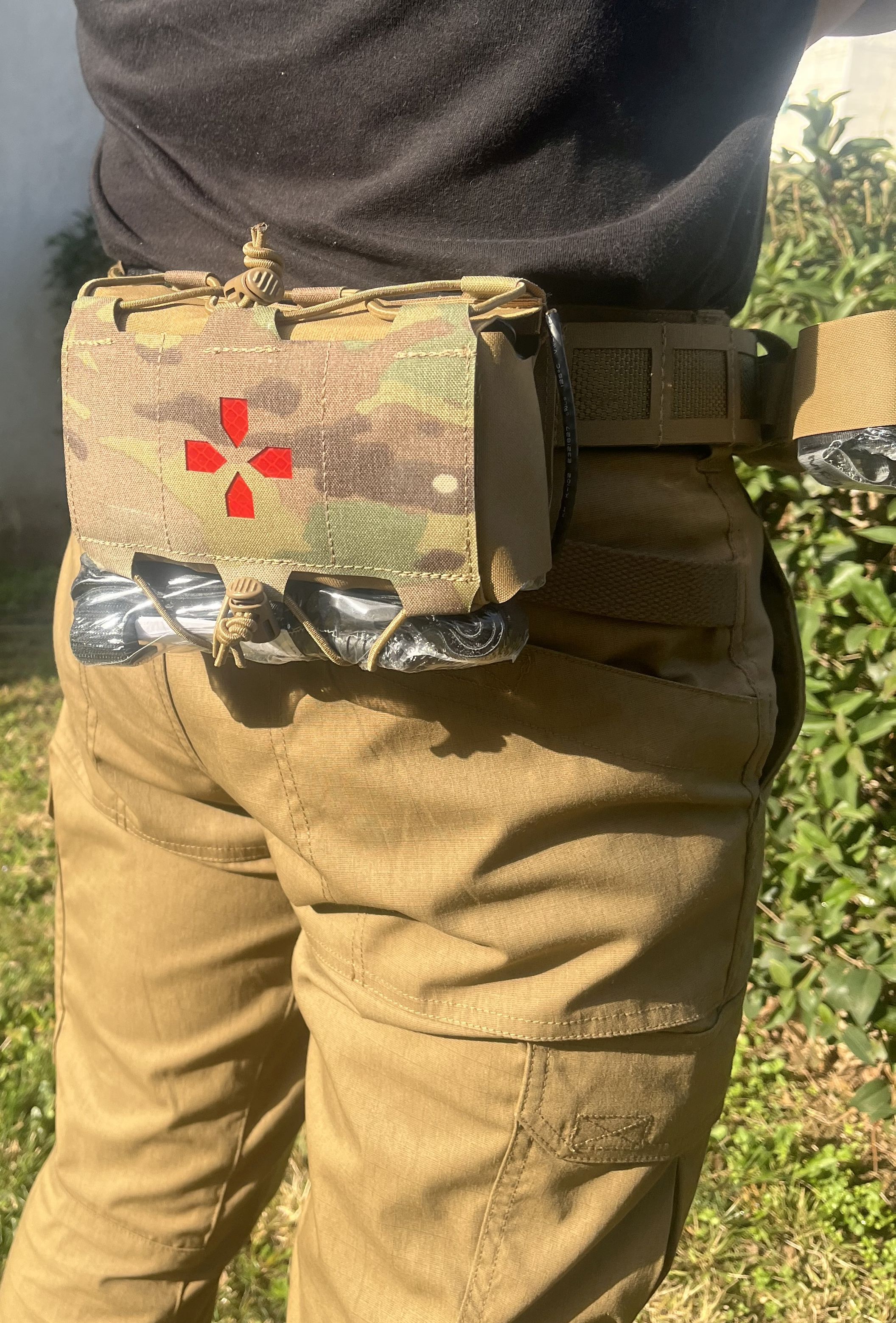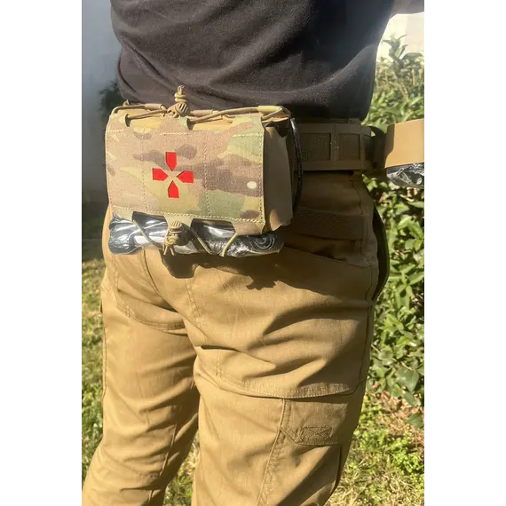 Το κιτ προορίζεται κυρίως για μεταφορά στη ζώνη, χωρίς να αποκλείεται η τοποθέτησή του σε άλλα σημεία. Η εξωτερική θήκη διαθέτει αμφιδέξια, ανοιχτή πρόσβαση, επιτρέποντας στον χρήστη να το χειριστεί και με τα δύο χέρια. Η εσωτερική θήκη με το περιεχόμενο βγαίνει και από τις δύο πλευρές με ένα γρήγορο τράβηγμα. Φέρει ελαστικά κορδόνια για την ανάρτηση υλικών, όπως tourniquet, αλλά και για την προσαρμογή του όγκου του κιτ.