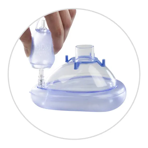 Η μάσκα ασκού αναζωογόνησης είναι κατασκευασμένη από υψηλής ποιότητας PVC και έχει σχεδιαστεί για χρήση με απλούς χειροκίνητους ή αυτόματους ασκούς τεχνητής αναπνοής.