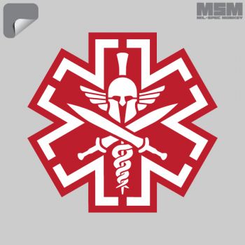 Αυτοκόλλητο σήμα Medical Spartan. Είναι κατασκευασμένο από ανθεκτικό βινίλιο έτσι ώστε να αντέχει σε οποιαδήποτε κατάσταση, όπως π.χ στο πίσω μέρος ενός στρατιωτικού αυτοκινήτου το οποίο περνά από λάσπες.