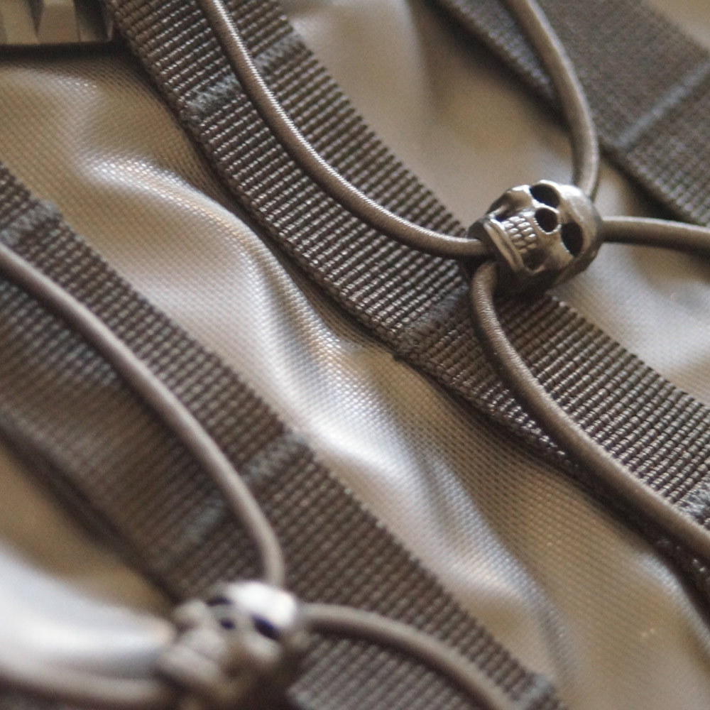 - Στο μπροστινό μέρος της τσάντας υπάρχει σύστημα με ελαστικούς ιμάντες για προσαρμογή εξοπλισμού (πχ. κράνος)