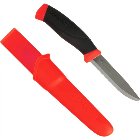 Το μαχαίρι είναι ειδικά σχεδιασμένο για να κόβει υλικά που συνήθως συναντώνται σε σχοινιά, κορδόνια, νάιλον, δίχτυα και υφάσματα. Η λεπίδα έχει κυρτή άκρη ασφαλείας για την αποφυγή τραυματισμών, καθώς και οδοντωτή λάμα και είναι κατασκευασμένη από ανοξείδωτο μέταλλο σύμφωνα με τις μοναδικές διαδικασίες της MORAKNIV, οι οποίες διατηρούν το μαχαίρι πιο κοφτερό για μεγαλύτερο χρονικό διάστημα. Η ελαστική αντιολισθητική λαβή βοηθάει τον χρήστη να κρατά το μαχαίρι με ασφάλεια, ώστε να μπορεί να εστιάσει στην εργασία του με σταθερότητα. Επιπλέον, η θήκη του σε έντονο χρώμα το καθιστά πιο ορατό, αποφεύγοντας τον χαμένο χρόνο στην εύρεση του μαχαιριού σε κρίσιμες στιγμές.