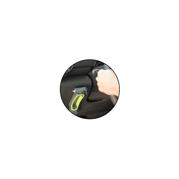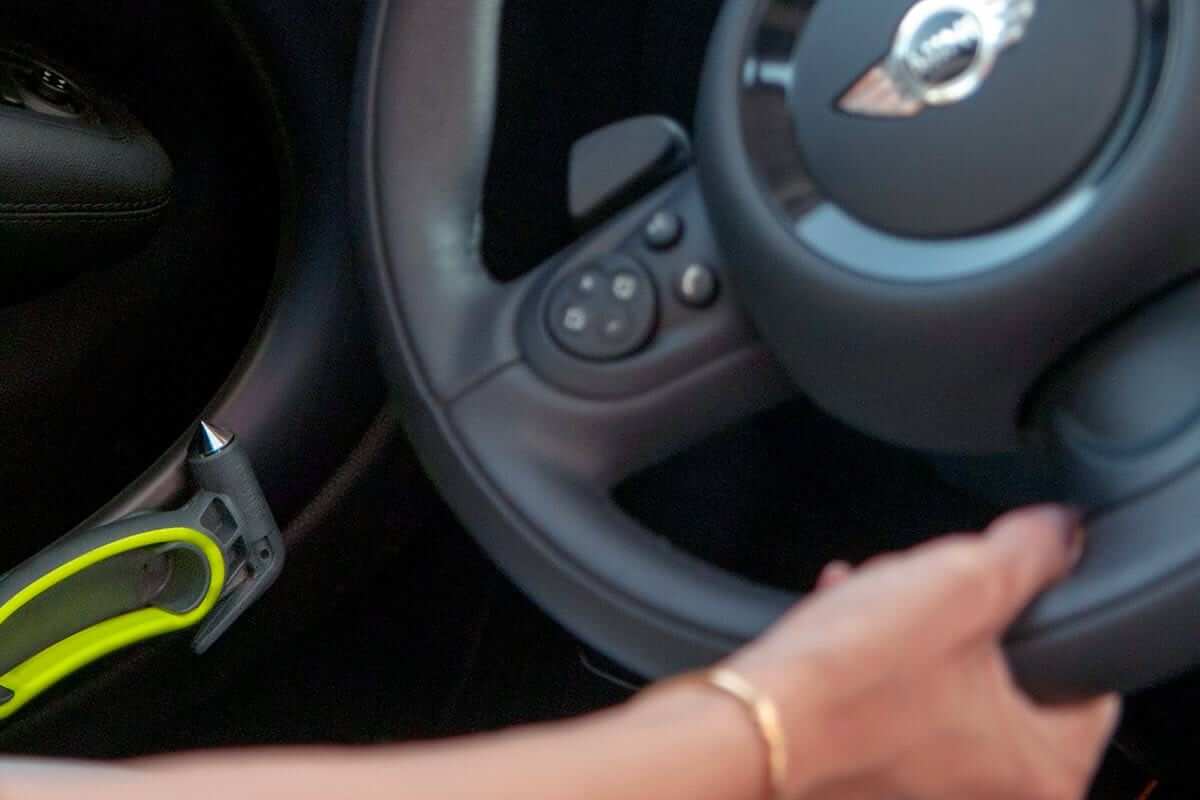 Η ανοξείδωτη κεφαλή του σφυριού έχει την ιδιότητα να σπάει με ευκολία τα πλαϊνά παράθυρα ενώ η κοφτερή λεπίδα του μπορεί να κόψει χωρίς κάποια ιδιαίτερη προσπάθεια τις ζώνες ασφαλείας σε περίπτωση που το θύμα εγκλωβιστεί. Εύκολο στην εγκατάσταση του μέσα στο αυτοκίνητο χάρις τη θήκη στερέωσης του. Μπορεί να προσαρμοστεί σε διάφορα σημεία του αυτοκινήτου έτσι ώστε να είναι εύκολα προσβάσιμο.