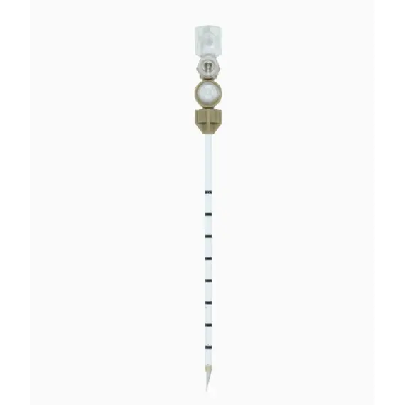 Η βελόνα είναι κατασκευασμένη από ανοξείδωτο ατσάλι υψηλής ποιότητας (316L), προσφέροντας εξαιρετική ανθεκτικότητα και βιοσυμβατότητα. Διαθέτει ενσωματωμένο μηχανισμό ασφαλείας και εργονομική λαβή για σταθερή και ακριβή εφαρμογή, ακόμη και σε συνθήκες πίεσης. Η συσκευασία είναι αποστειρωμένη και ατομική, έτοιμη προς χρήση χωρίς την ανάγκη πρόσθετου εξοπλισμού.