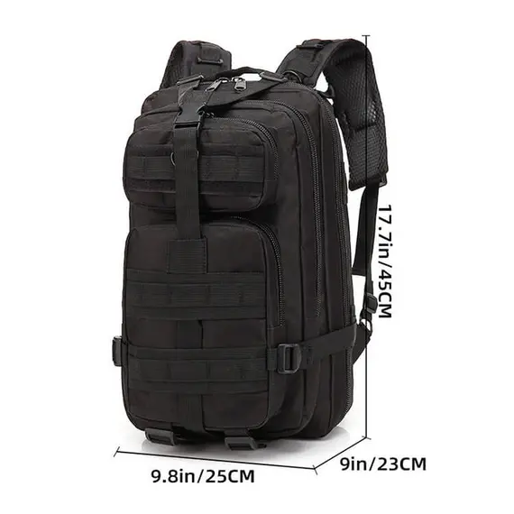 Το σακίδιο πλάτης Backpack 25 λίτρων είναι ένα πρακτικό και άνετο σακίδιο για καθημερινή χρήση, ταξίδι ή υπαίθριες δραστηριότητες. Είναι κατασκευασμένο από αδιάβροχο 600D Polyester για προστασία των αντικειμένων σας από τις καιρικές συνθήκες και φέρει εργονομική πλάτη με ενσωματωμένη επένδυση για άνετη μεταφορά ακόμη και σε μεγάλα φορτία. Διαθέτει δύο κύριους χώρους, εξωτερικές θήκες με φερμουάρ, εσωτερικές θήκες οργάνωσης, καθώς και πλαϊνούς ιμάντες συμπίεσης και ιμάντα μέσης για σταθερότητα. Ιδανικό για σχολείο, δουλειά, ταξίδι ή πεζοπορία.