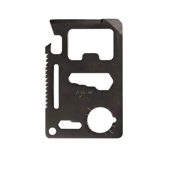 Το MIL-TEC Πολυχρηστικό Εργαλείο Επιβίωσης 11 σε 1 είναι ένα συμπαγές, πρακτικό και εξαιρετικά χρήσιμο εργαλείο που δεν πρέπει να λείπει από κανένα κιτ επιβίωσης ή εξοπλισμό υπαίθριων δραστηριοτήτων. Κατασκευασμένο από ανθεκτικό ανοξείδωτο μέταλλο, προσφέρει 11 διαφορετικές λειτουργίες συγκεντρωμένες σε μια συσκευή μεγέθους πιστωτικής κάρτας, εύκολα φορητή σε πορτοφόλι ή σακίδιο.