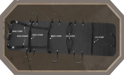 • Διαθέτει έντονη σήμανση για να φαίνεται που πως γίνεται η τοποθέτηση του θύματος και το δέσιμο του.