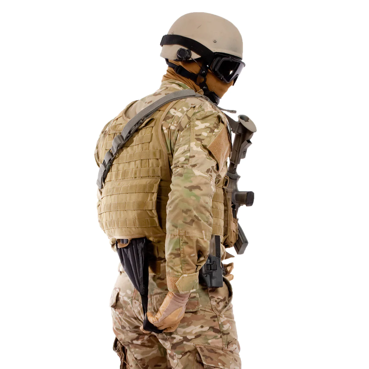 The Phantom® can be mounted directly to the individual combat equipment without taking space on the vest from other critical items such as magazines, radio pouches, or hydration systems. These items can be mounted over the litter carrier making it almost completely unnoticeable and without interfering with accessibility. The internal version was designed to fit inside of the Modular Body Armor Vest by Eagle, or the Plate Carrier with Cummerbund issued in the Special Forces equipment set. These two options provide a level of flexibility never before associated with casualty evacuation platforms.