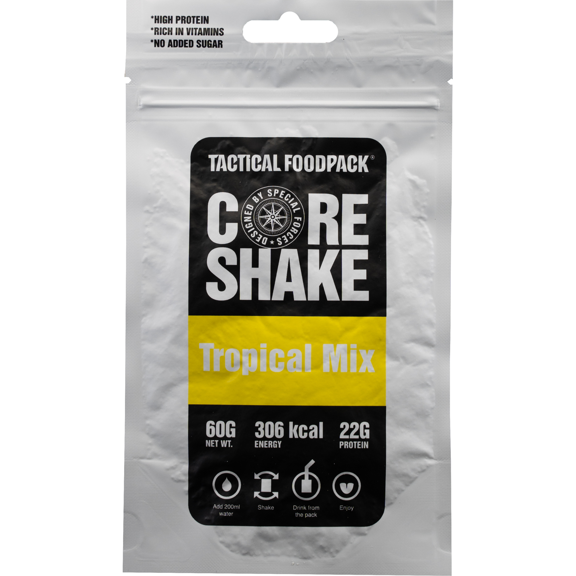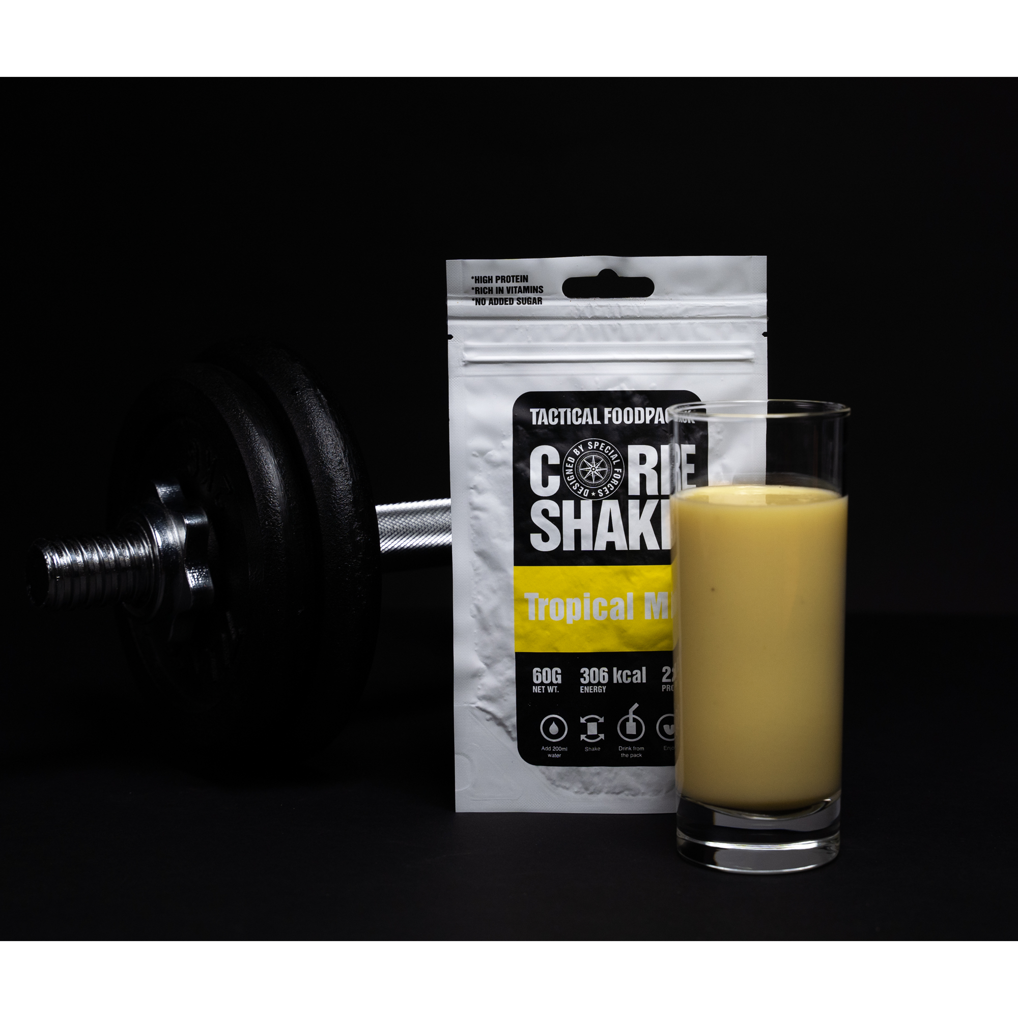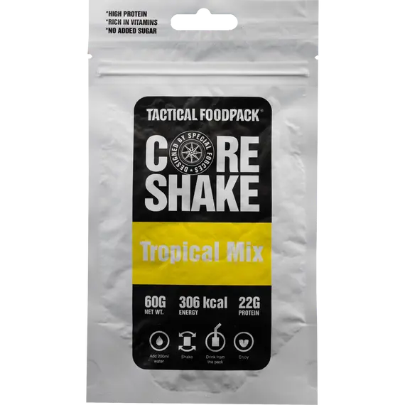 Ανακαλύψτε το Tactical Foodpack Core Shake, ένα πλήρως ισορροπημένο smoothie υπερτροφής με προσθήκη πρωτεΐνης καζεΐνης και λάδι MCT, σχεδιασμένο για να ενισχύει τους μύες και να προσφέρει ενέργεια μακράς διάρκειας σε κάθε σας περιπέτεια.